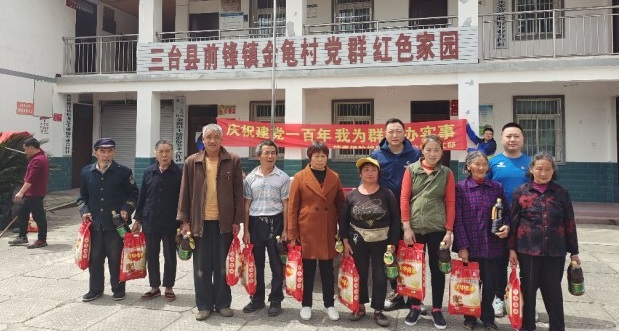 支部党员走进三台县前锋镇金龟村和古井镇锁泉村,协调解决村民们生活和生产中的困难问题,并为困难群众送上生活慰问品;主动下田帮助村民们收割菜籽,为农忙出把力,为村民办实事。