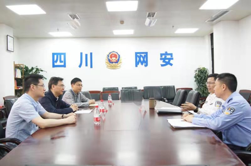 四川省公安厅网安总队支队长张学谦,公司信息技术部负责人樊孟林、行政管理部负责人祁军操一同参加会谈。