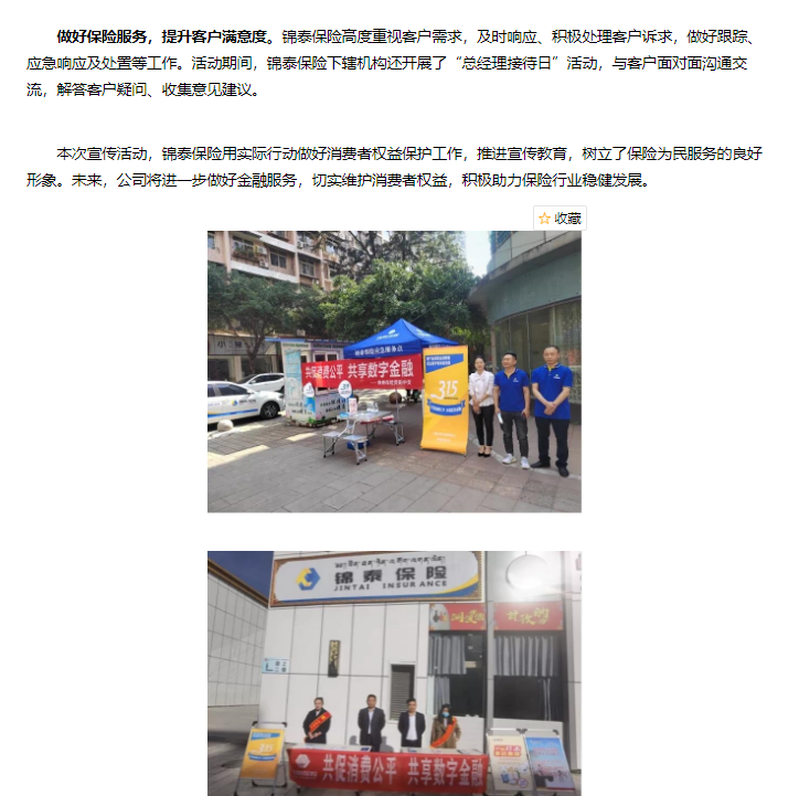 金融投资报丨锦泰保险积极开展“3.15”保险消费者权益保护教育宣传周系列活动
