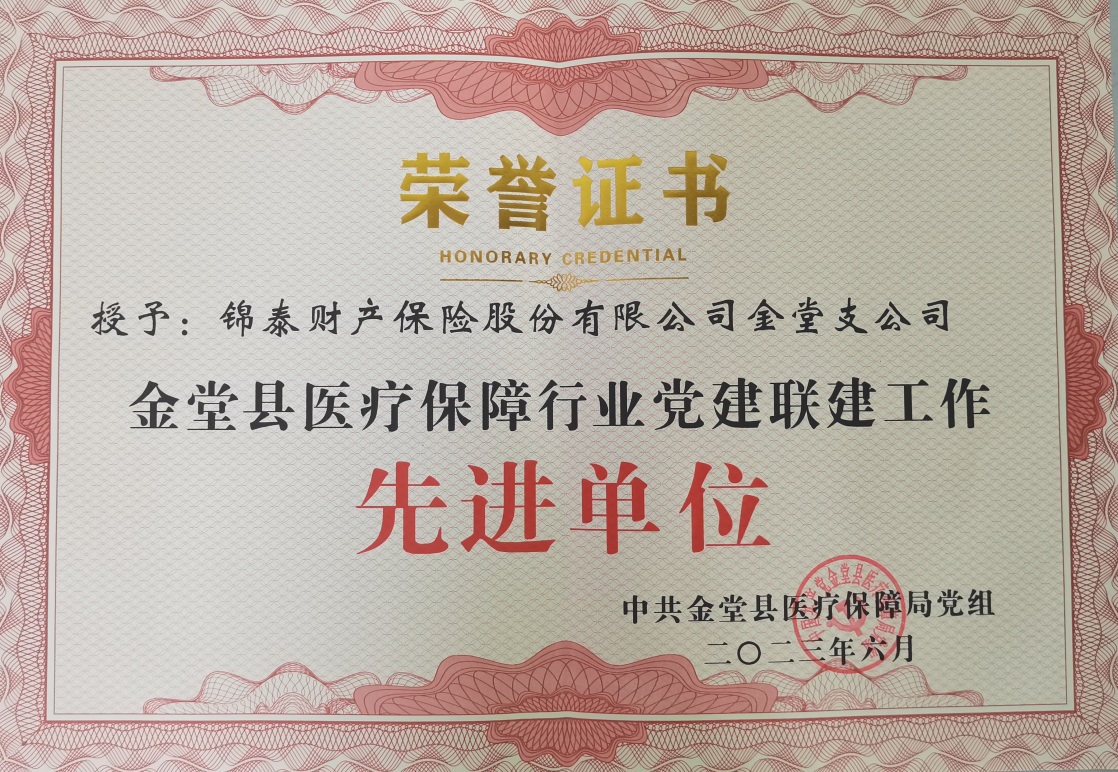 近日,金堂支公司受邀参加金堂县医保行业联盟“学习新思想、砥砺新征程”暨庆“七一”大会,被金堂县医保局授予“金堂县医疗保障行业党建联建工作先进单位”荣誉称号。