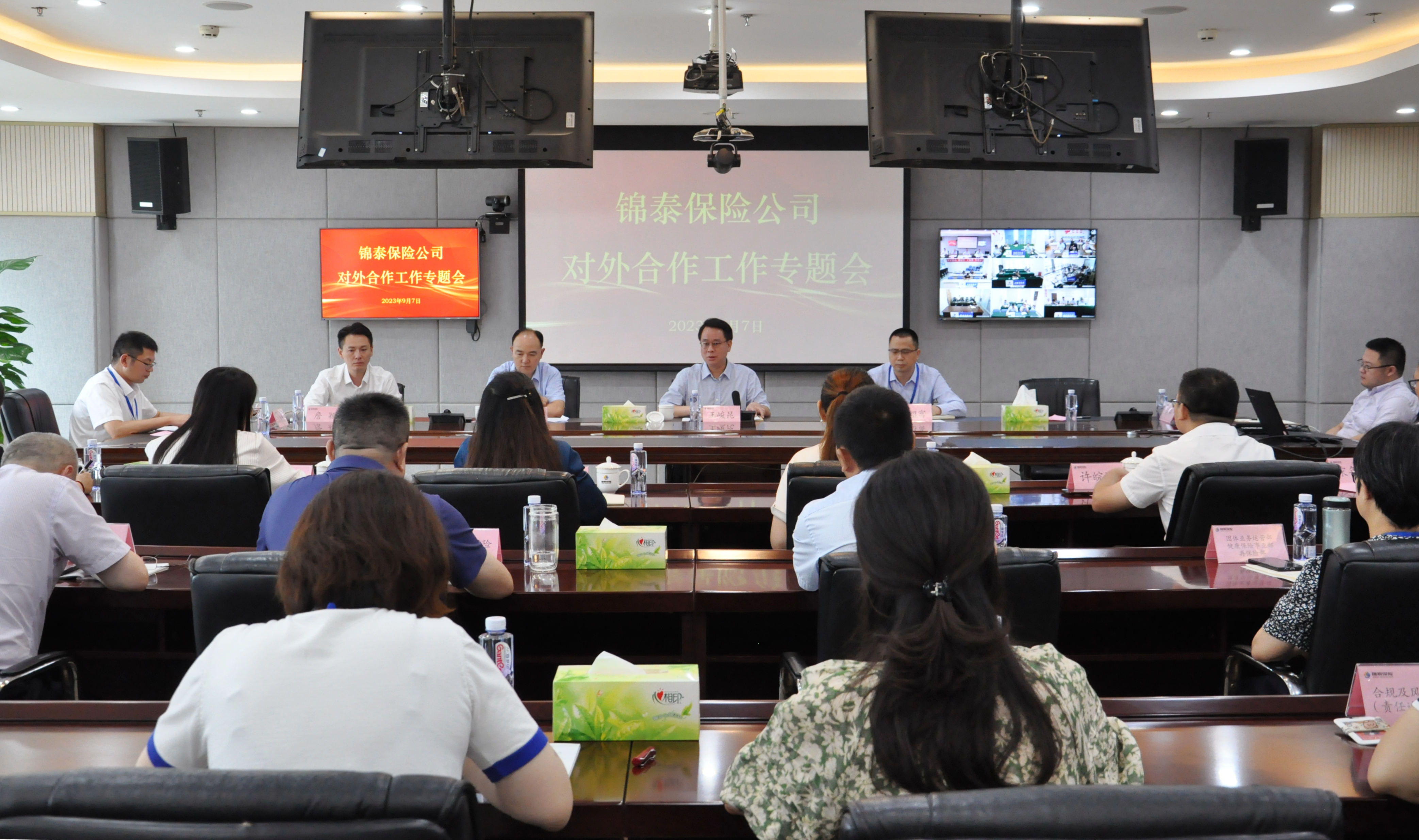 9月7日,锦泰保险公司在蓉召开对外合作工作专题会。市委国资国企工委委员、市国资委党委委员、副主任王峻昆就对外合作工作进行辅导。对外合作产业促进处相关同志、锦泰保险公司副总经理(主持工作)宋绍富,副总经理胡科、全体中层干部和分公司班子成员70余人参加会议,会议由副总经理、董事会秘书邬润龙主持。