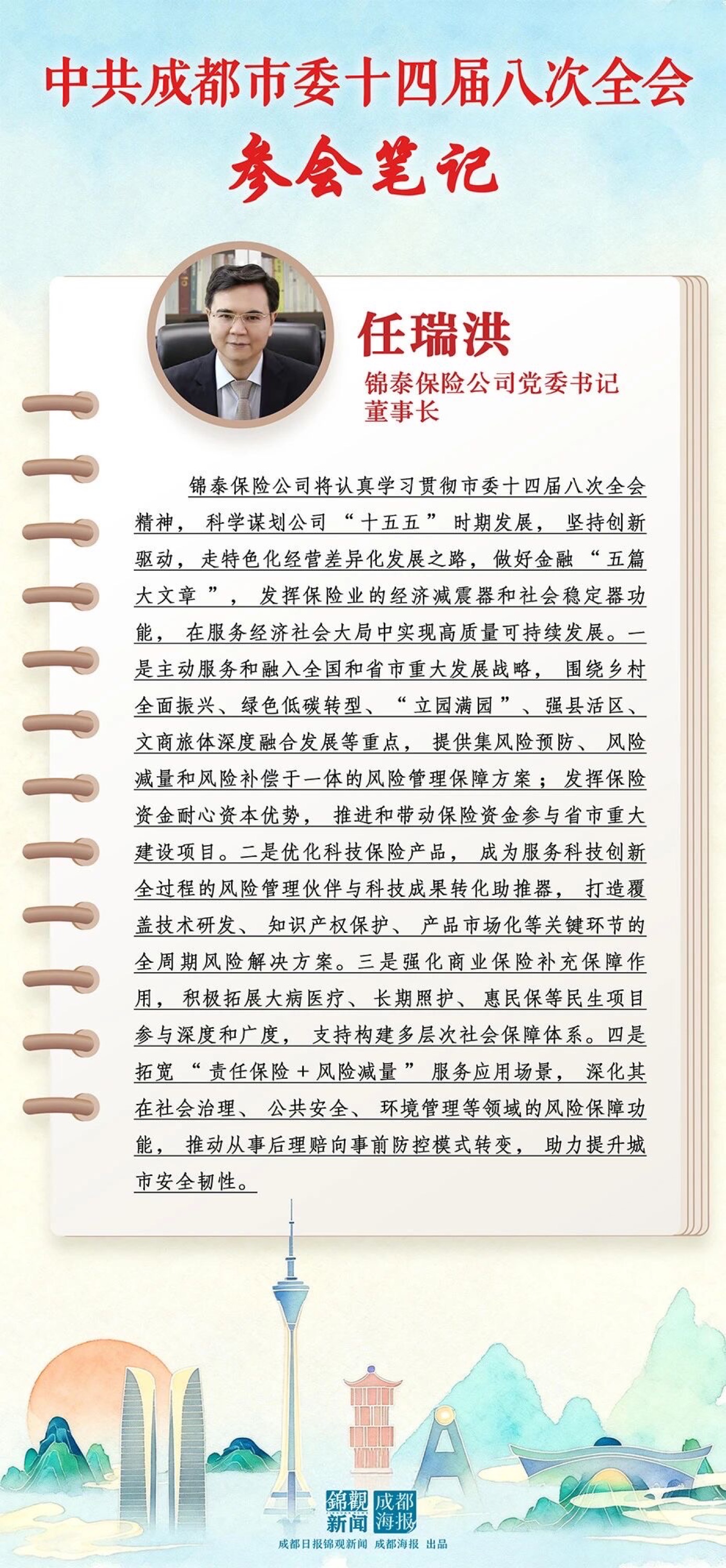 成都日报锦观新闻|参会笔记——锦泰保险党委书记、董事长任瑞洪:深化保险服务创新在发展大局中贡献更多金融力量