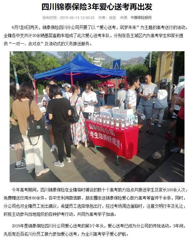 中国保险报网∣锦泰保险3年爱心送考再出发
