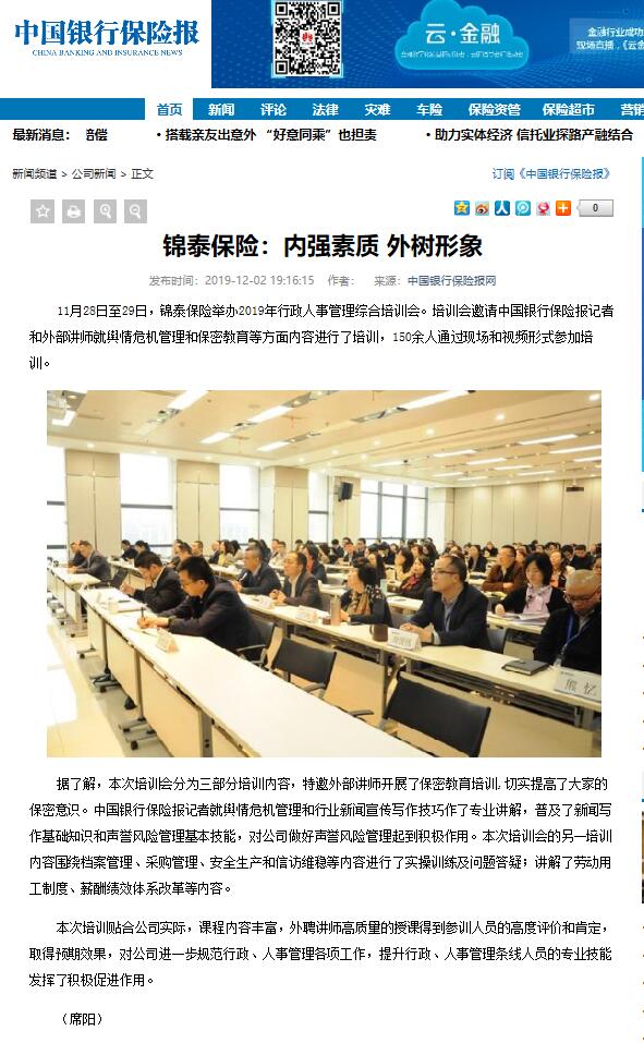 中国银行保险报∣锦泰保险:内强素质 外树形象