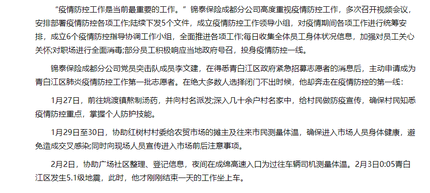 金融投资报∣战疫情 锦泰保险党员在行动