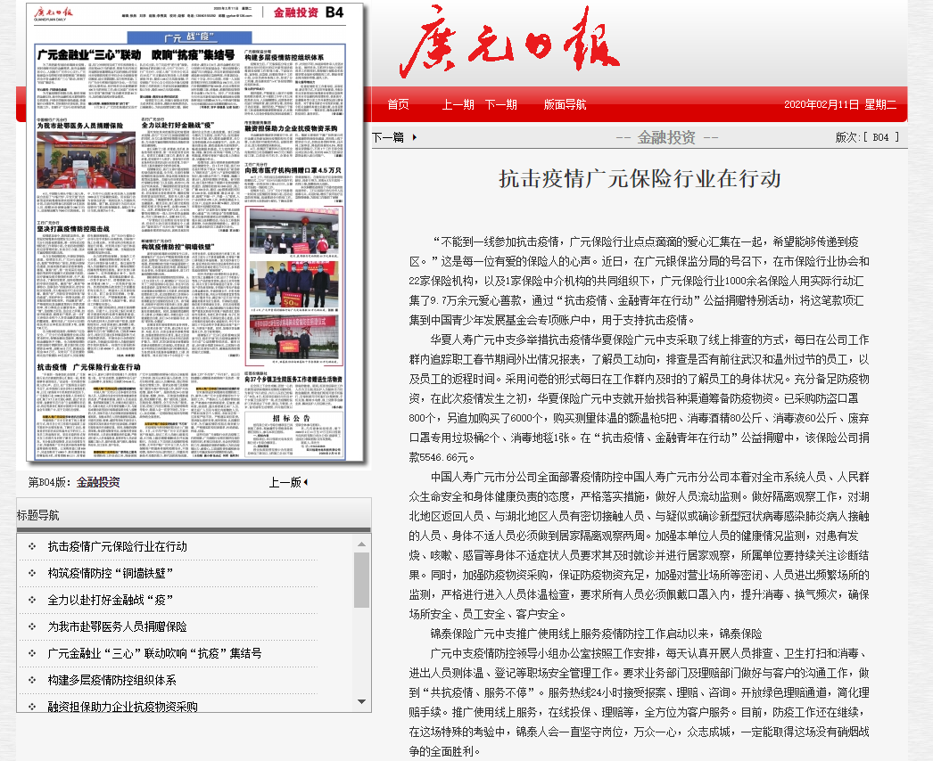 广元日报∣抗击疫情广元保险行业在行动